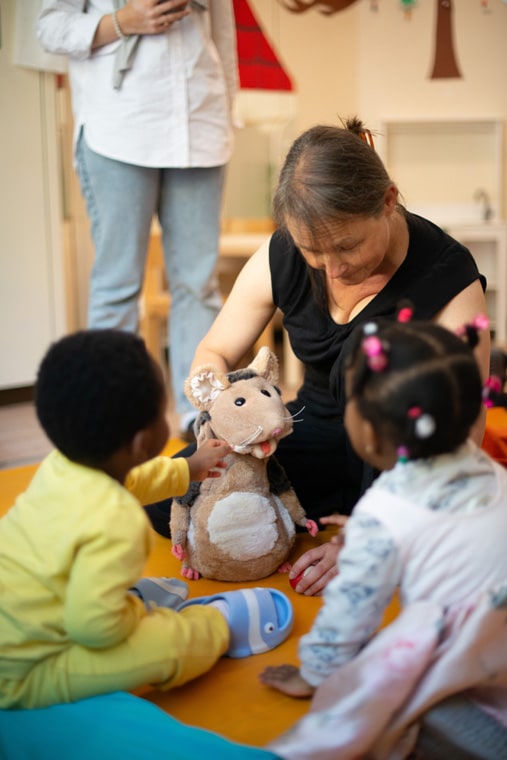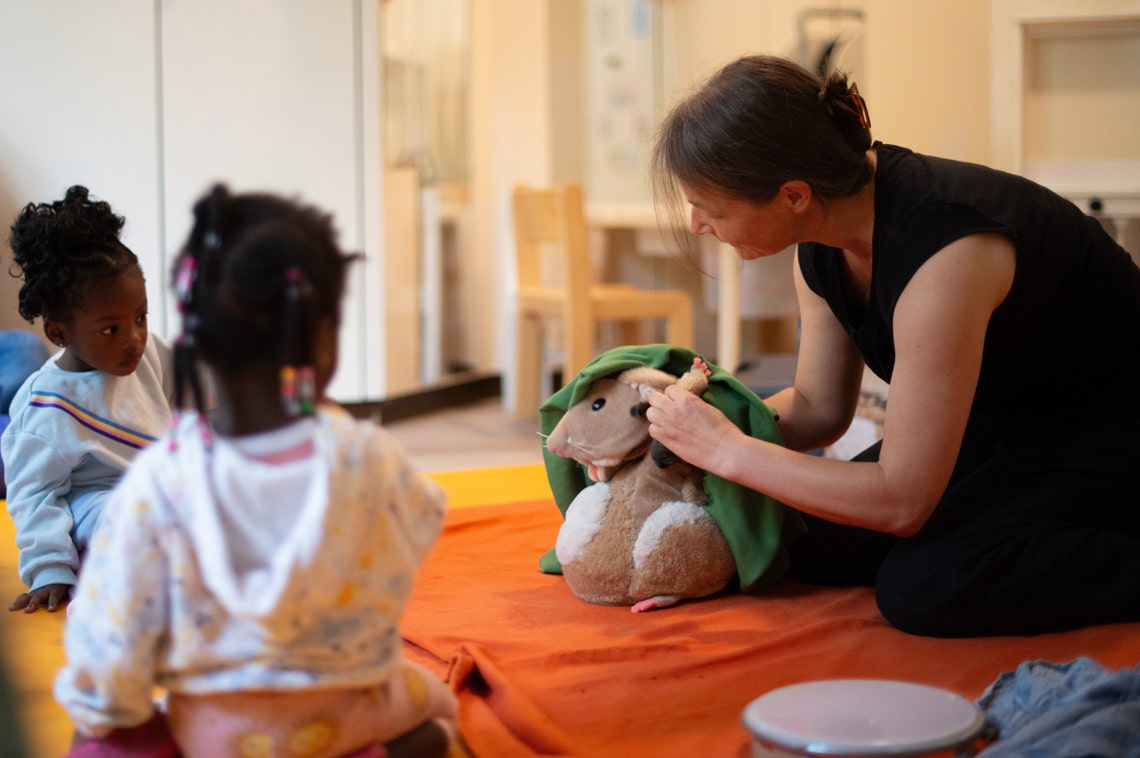 Für Kinder im Krippenalter sind Theateraufführungen in der Kita oft noch eine Herausforderung. Die Trennung zwischen Bühne und Zuschauerraum, die Lebendigkeit der Objekte und Figuren, die changierende Präsenz der Puppenspieler*innen und ihre magische Beziehung zum Geschehen verwirren die Kinder. Was ist da los? Und wie können die Kinder sich dazu in Beziehung setzen?